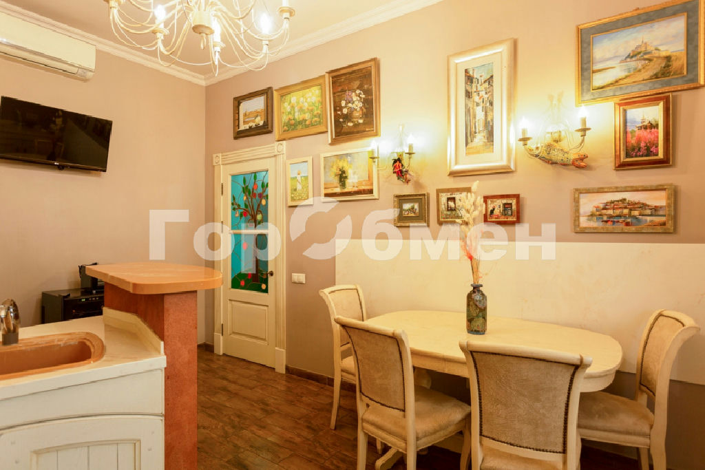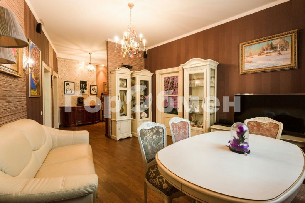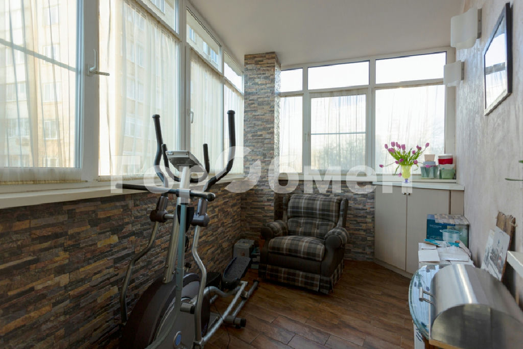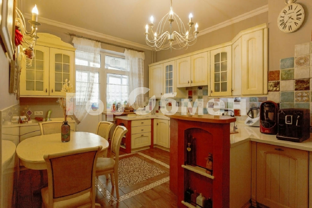 Квартира в отличном состоянии, на полу паркет и керамогранит, теплые полы на кухне в санузлах, на лоджии, в прихожей; дорогие двери из лиственницы с эксклюзивными витражами ручной работы. На кухне встроенный итальянский гарнитур.
