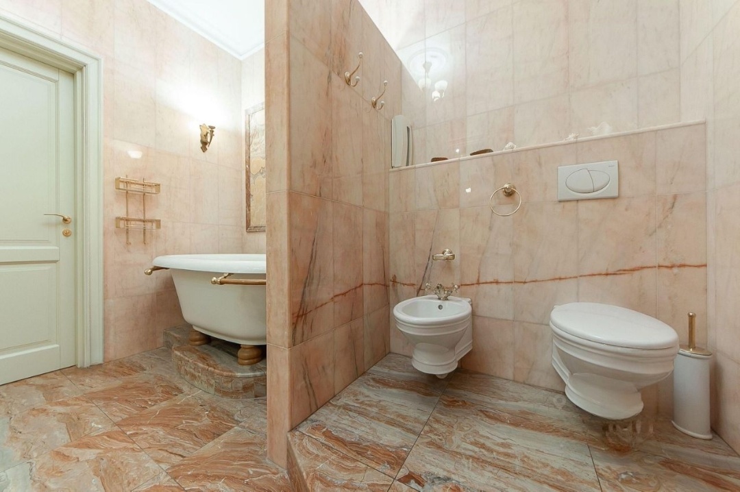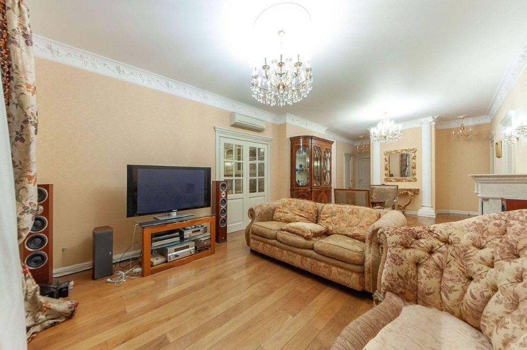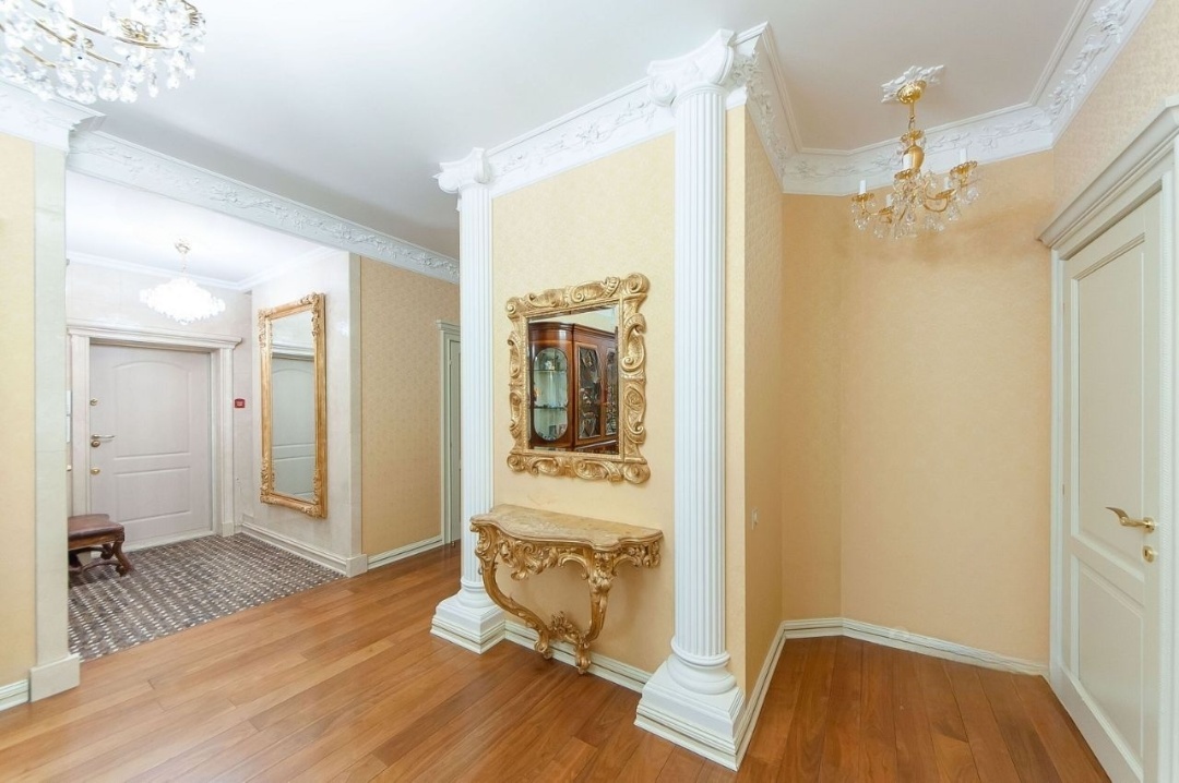 В квартире выполнен очень качественный ремонт по индивидуальному проекту. Материалы :паркет из американского ореха , итальянский мрамор, эффектная гипсовая лепнина. Мебель дизайнерская.
